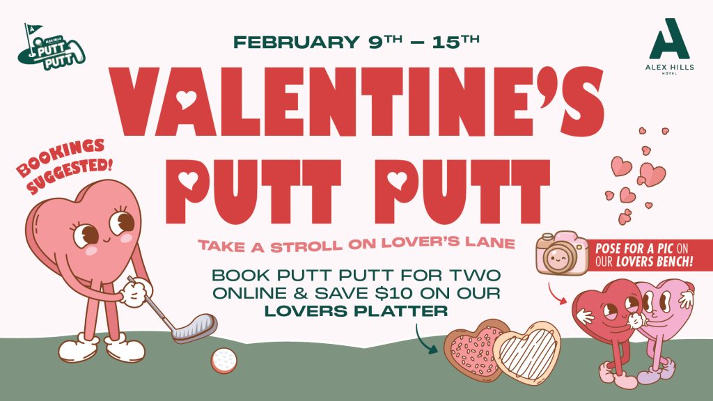 Book putt putt for two online and save $10 on our Lovers Platter! We’re talking heart shaped pizza’s, chicken wings, arancini balls & garlic bread.