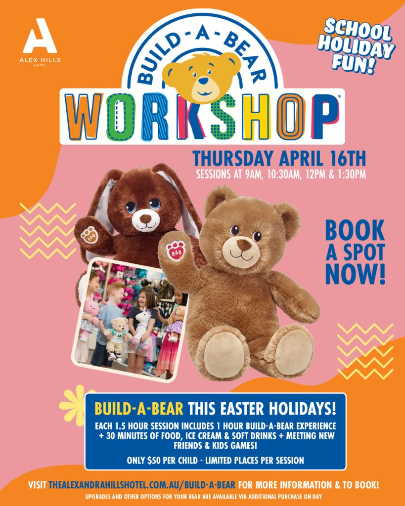 This April, we’re bringing the magic of Build-A-Bear Workshop to the Alex Hills Hotel for a special school holiday event. Whether it’s their first furry friend or an addition to a growing collection, your child will love the hands-on experience of bringing a bear to life.