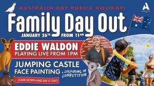 Celebrate AUSTRALIA DAY at our FAMILY DAY OUT at The Alexandra Hills Hotel on January 26th! Join us in the FAIRWAY GARDEN from 11am for