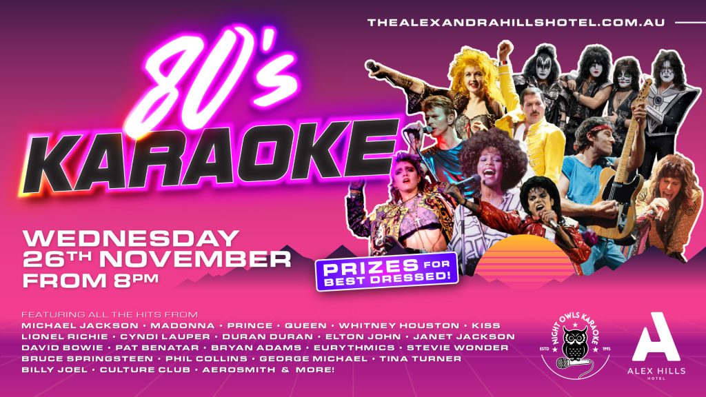 80’s KARAOKE at THE ALEX HILLS HOTEL!