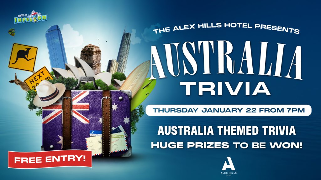 Let’s have a rip-roaring good time at our Aussie Trivia Night, hosted by the legends at Infusion Trivia!