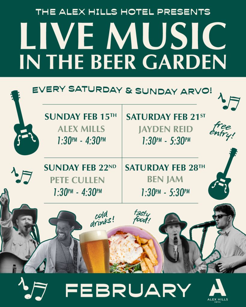 Live Music in the Beer Garden EVERY Saturday & Sunday from 1:30pm at The Alex Hills Hotel!